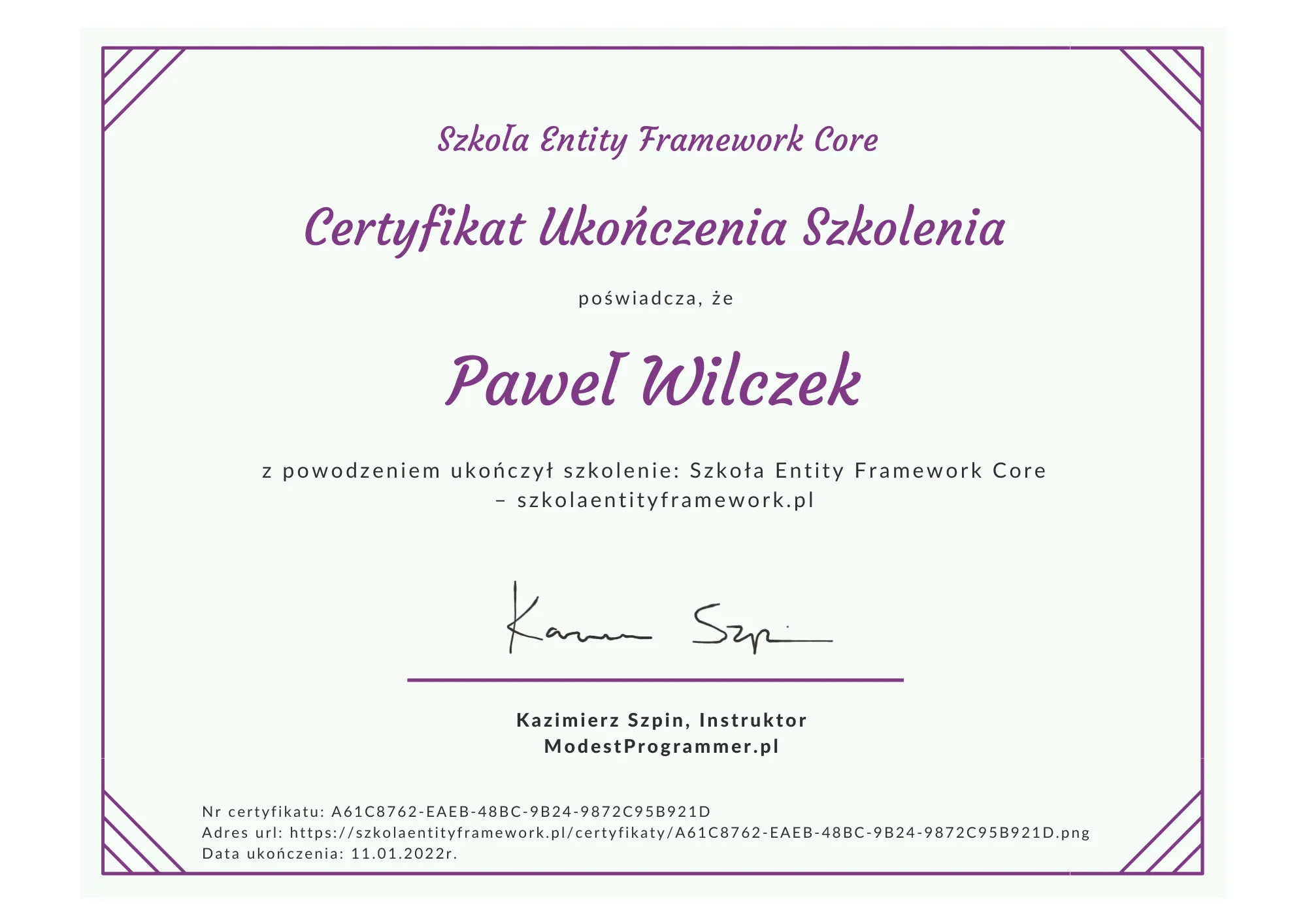 - 2022-01-11 - Szkoła Enity Framework Core -
