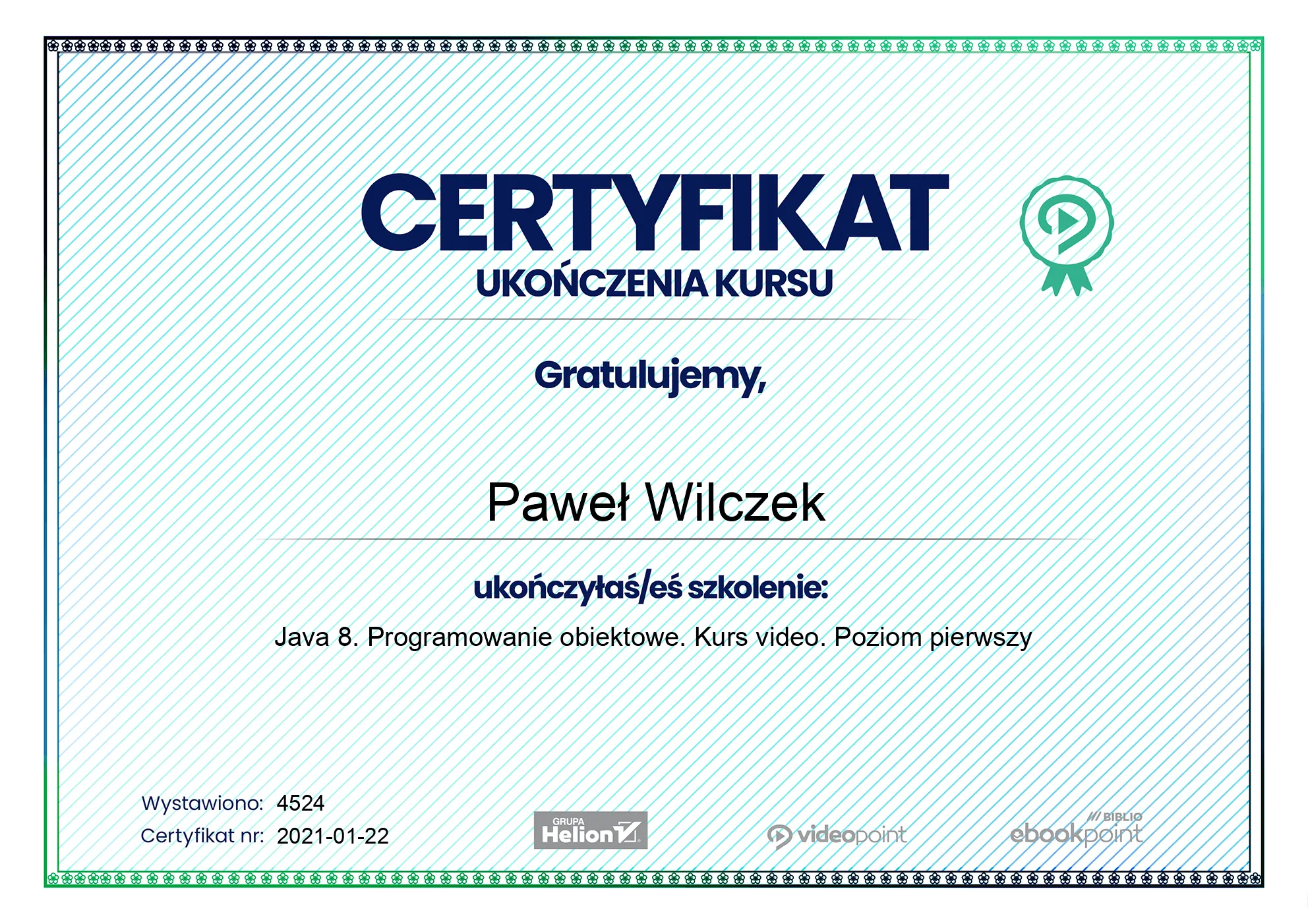 - 2021-01-22 - Java 8. Programowanie obiektowe. Kurs video. Poziom pierwszy -