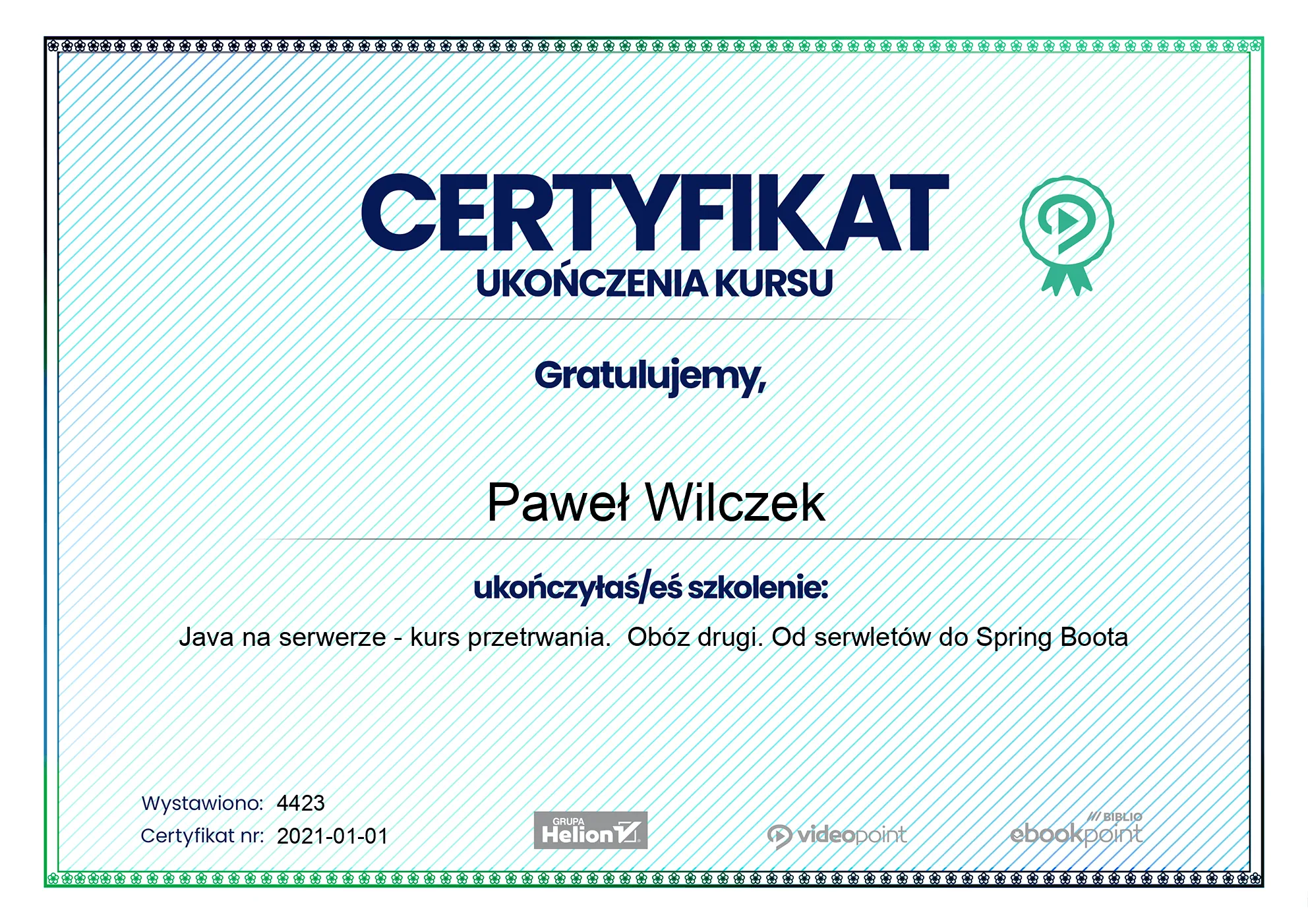- 2022-05-20 - Java Full Stack Developer. Kurs video. Tworzenie aplikacji internetowych od podstaw -