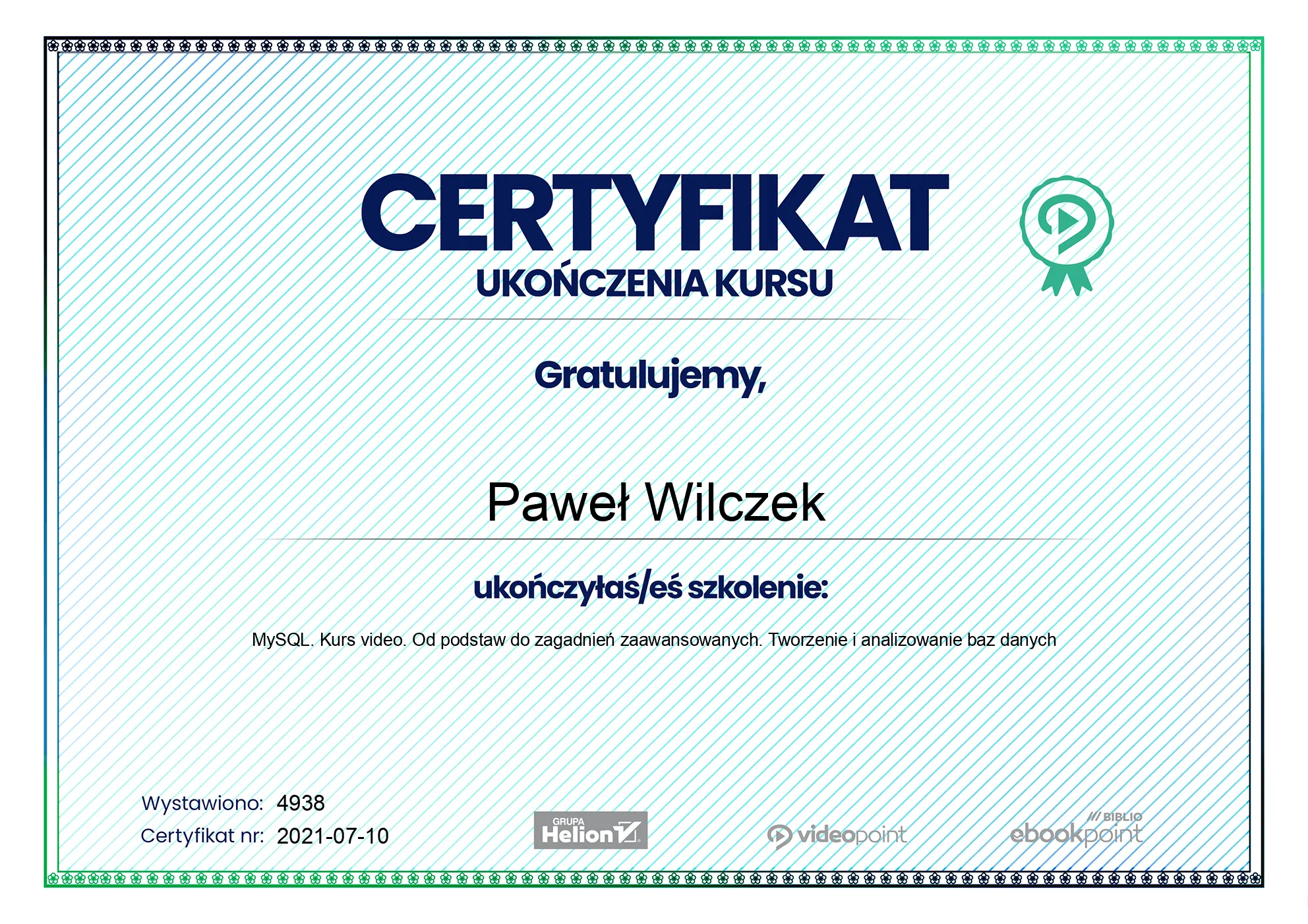 - 2021-07-10 - MySQL. Kurs video. Od podstaw do zagadnień zaawansowanych. Tworzenie i analizowanie baz danych -