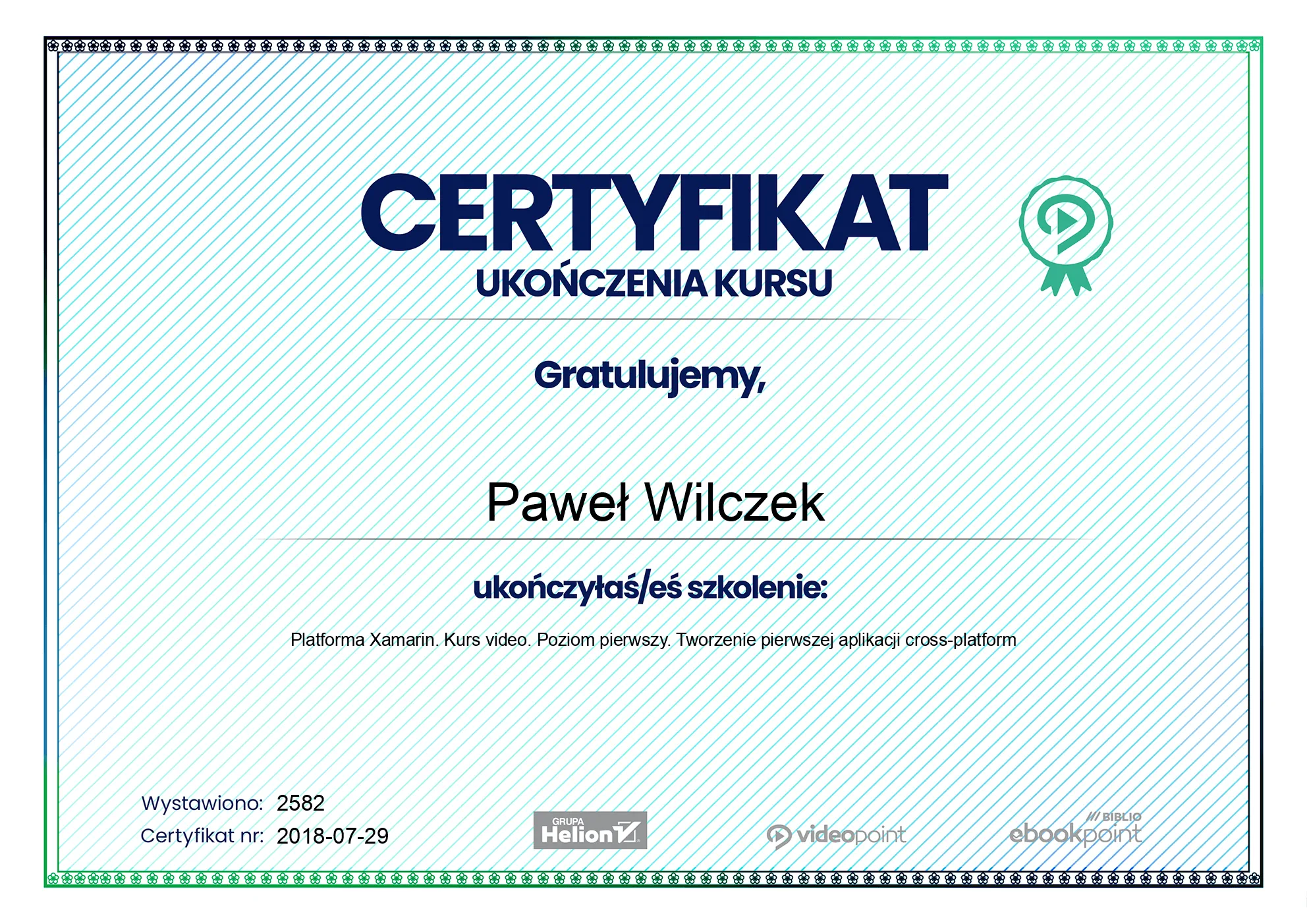 - 2018-07-29 - Platforma Xamarin. Kurs video. Poziom drugi. Zaawansowane techniki tworzenia aplikacji cross-platform -