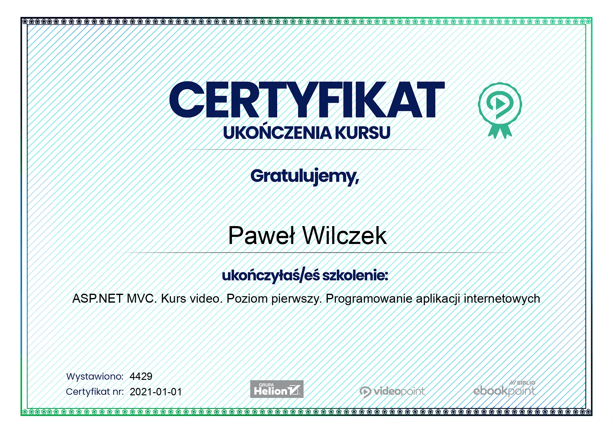 - 2021-01-01 - ASP.NET MVC. Kurs video. Poziom pierwszy. Programowanie aplikacji internetowych -