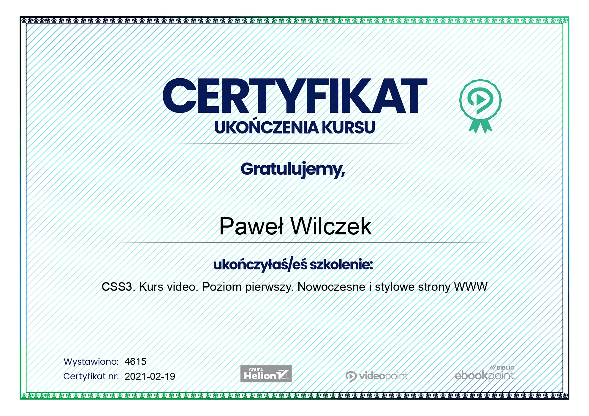 - 2021-02-19 - CSS3. Kurs video. Poziom pierwszy. Nowoczesne i stylowe strony WWW -