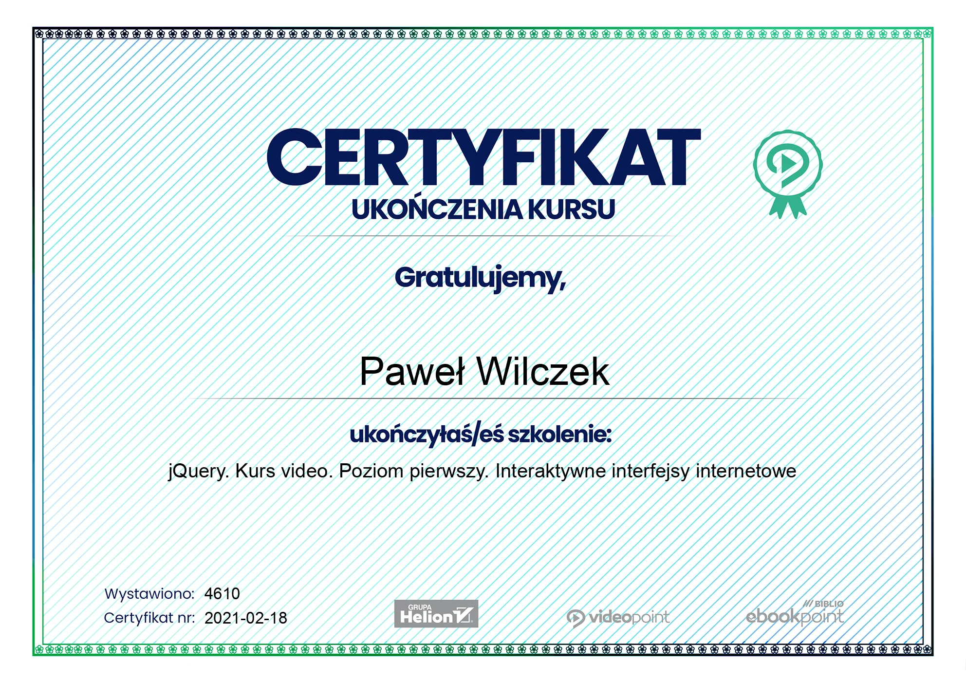 - 2021-02-18 - jQuery. Kurs video. Poziom pierwszy. Interaktywne interfejsy internetowe -